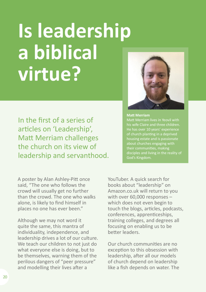 In the first of a series of articles on ‘Leadership’, Matt Merriam challenges the church on its view of leadership and servanthood.