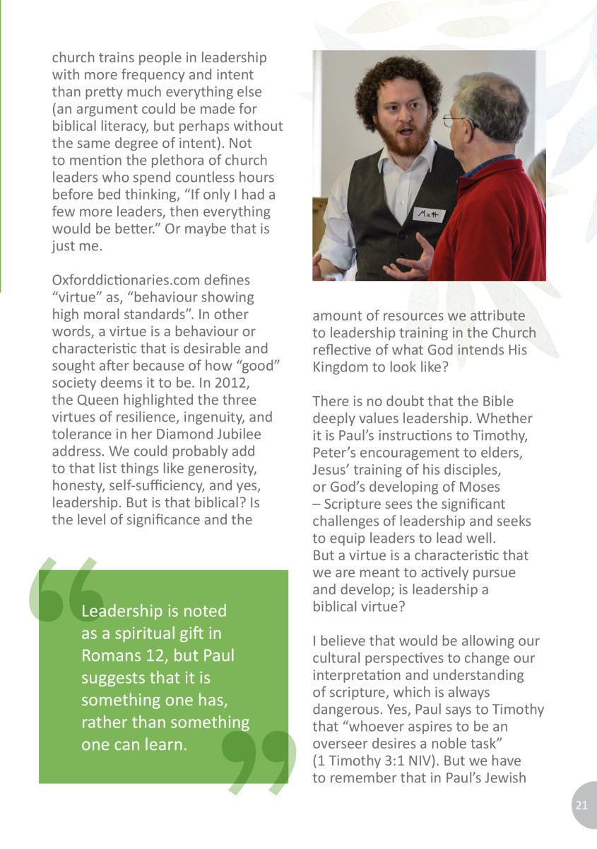 Oxforddictionaries.com defines “virtue” as, “behaviour showing high moral standards”. In other words, a virtue is a behaviour or characteristic that is desirable and sought after because of how “good” society deems it to be. In 2012, the Queen highlighted the three virtues of resilience, ingenuity, and tolerance in her Diamond Jubilee address. We could probably add to that list things like generosity, honesty, self-sufficiency, and yes, leadership. But is that biblical? Is the level of significance and the amount of resources we attribute to leadership training in the Church reflective of what God intends His Kingdom to look like?