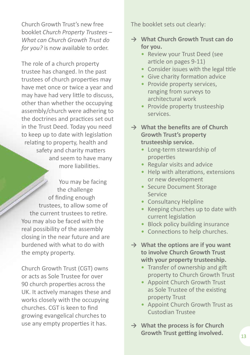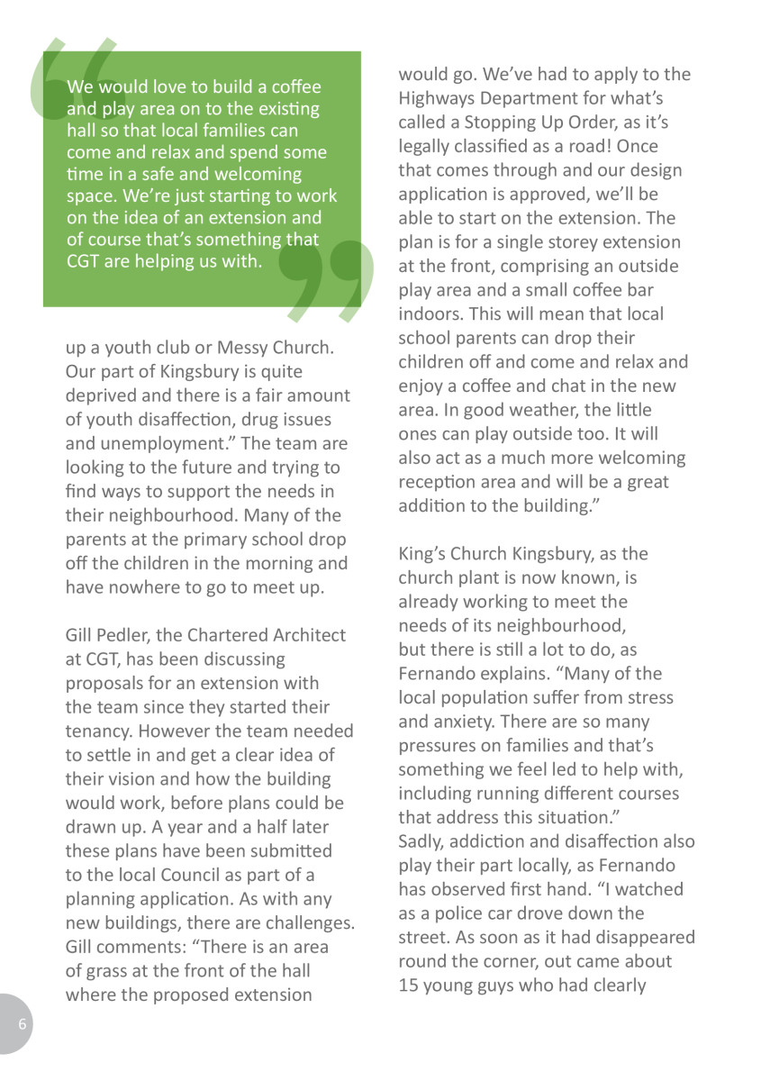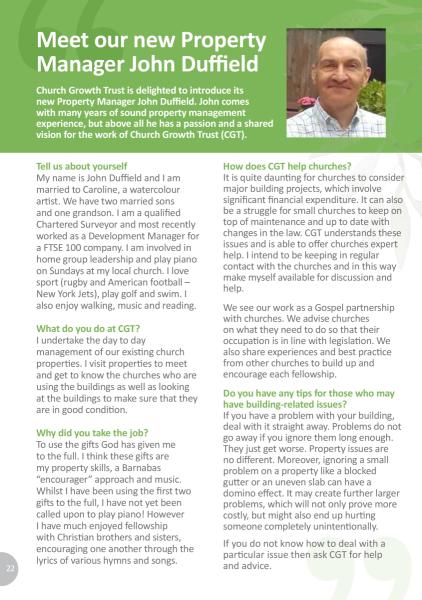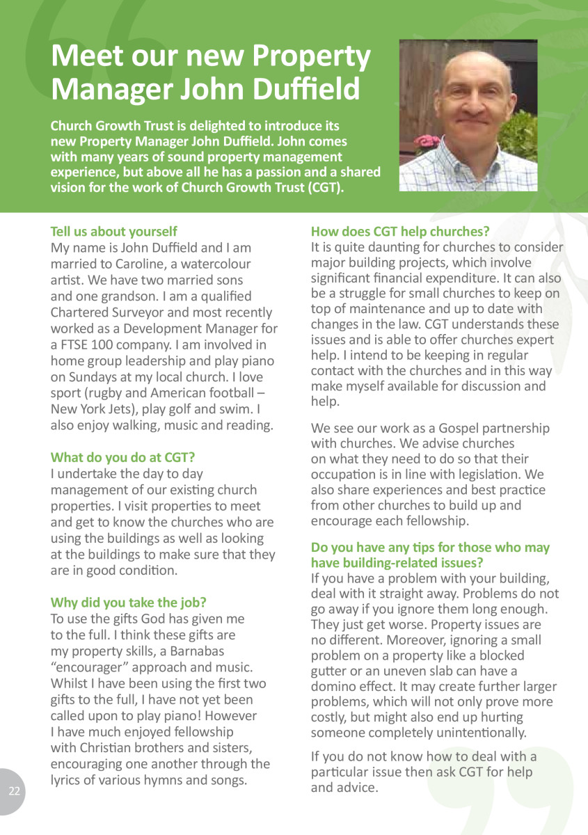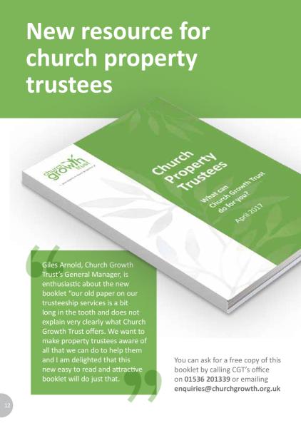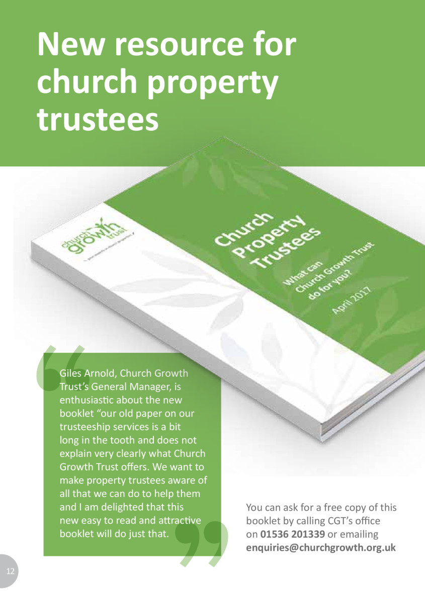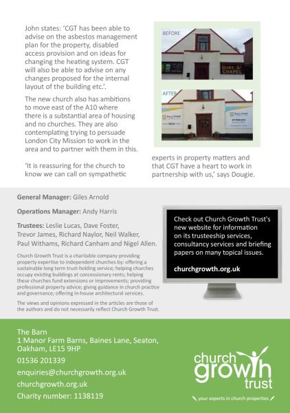 ‘It is reassuring for the church to know we can call on sympathetic experts in property matters and that CGT have a heart to work in partnership with us,’ says Dougie.
