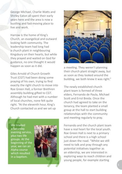 The new church also has ambitions to move east of the A10 where there is a substantial area of housing and no churches. They are also contemplating trying to persuade London City Mission to work in the area and to partner with them in this.