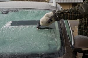 - Fully clear and de-ice your windscreen and remove loose snow from the roof and bonnet before setting off